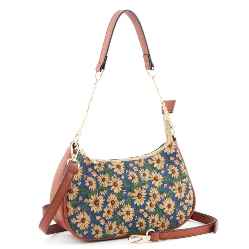 Portuguese Azulejo Cork Shoulder Bag - Vegan Hobo Purse with Gold Chain Strap
