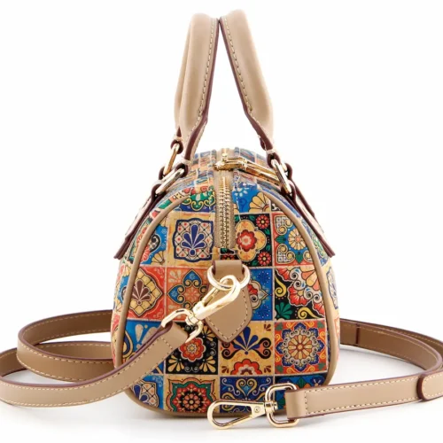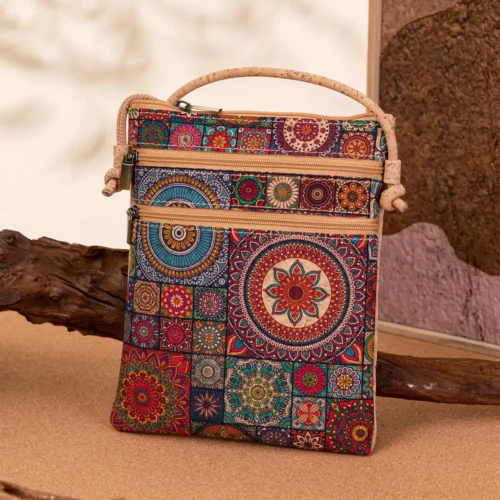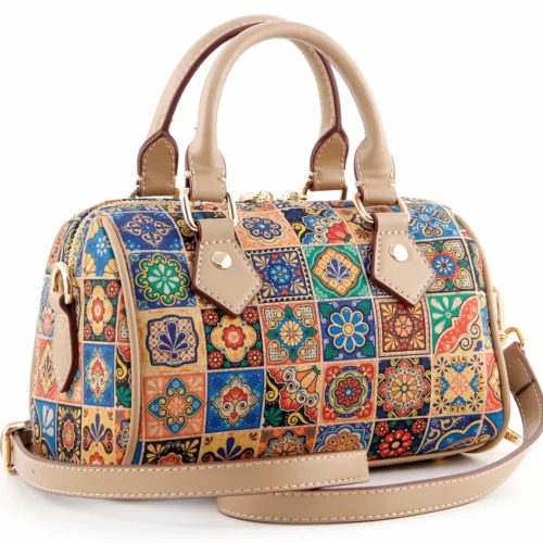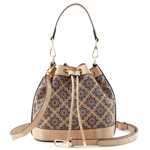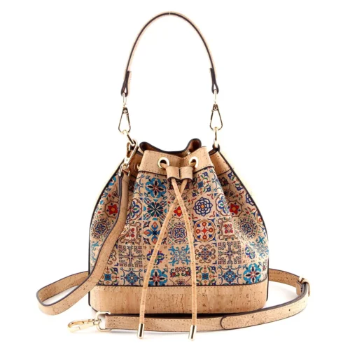 Mosaic Print Cork Bucket Handbag - Sustainable Vegan Crossbody Bag for Women