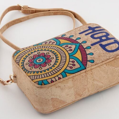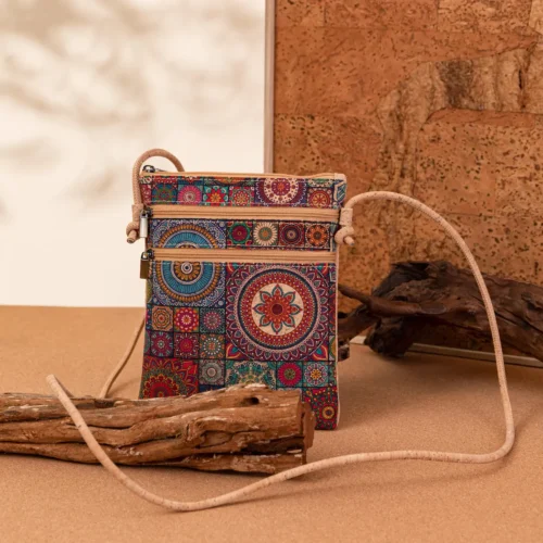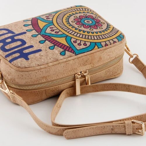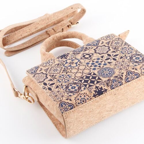 Sustainable Cork Camera Bag - Portuguese Tile Print Crossbody Purse