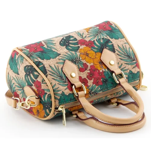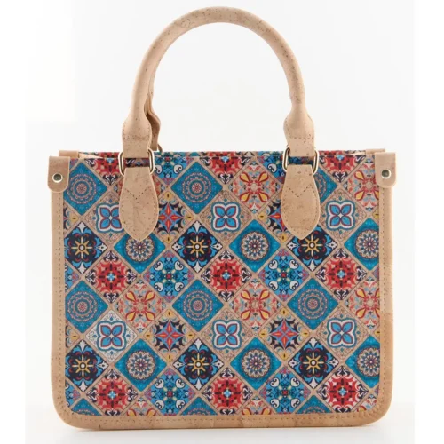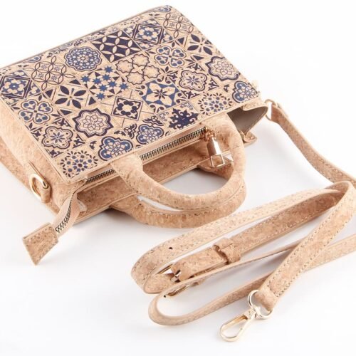 Portuguese Azulejo Tile Cork Boston Bag - Vegan Convertible Crossbody Handbag