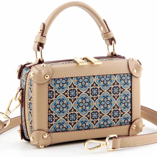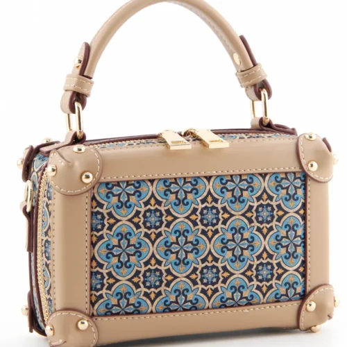 Portuguese Azulejo Cork Mini Trunk Bag - Structured Vegan Crossbody Box