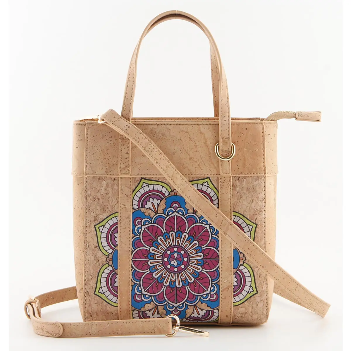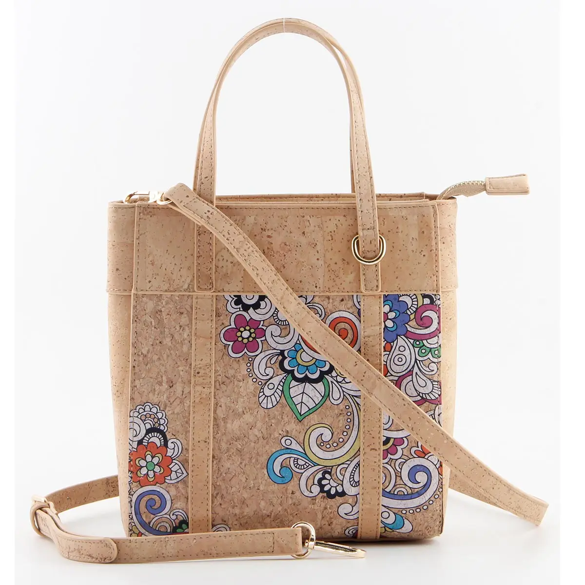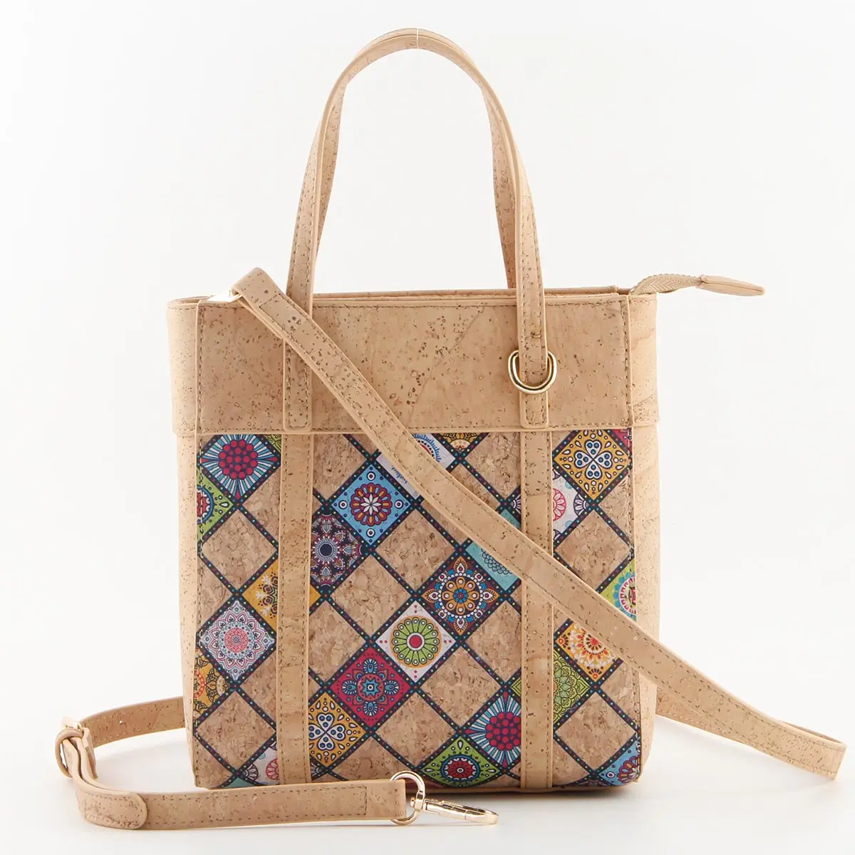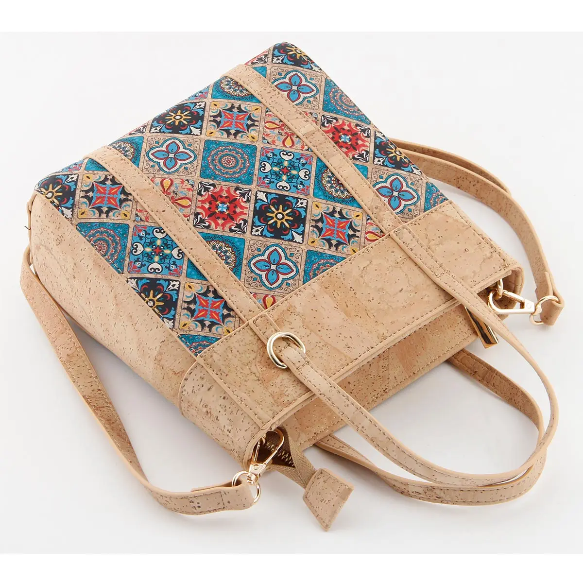 Portuguese Azulejo Cork Crossbody Tote – Small Vertical Vegan Shoulder Bag